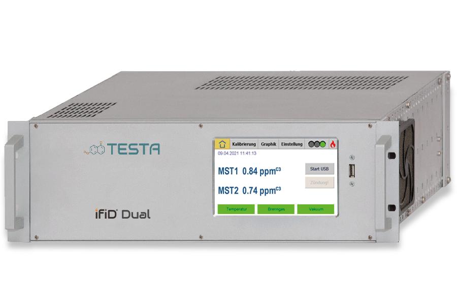 The stationary Flame-Ionisation-Detector iFiD Dual is designed for measuring at two points with one unit. This saves money in comparison to a 2 unit solution. The channels are separated from each other and so you can permanently measure high and low concentrations paralell without switching procedure.