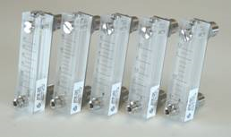 The Ankersmid AFM flow meters are consisting of a vertical, internally conical glass tube widening towards the top in which a float can move freely upwards and downwards. A “front panel“ of a maximum 4 mm thickness with two appropriate mounting bore holes serves as base body for attaching the head and the bottom part.