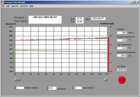 ViscoView® data collection software connects via Modbus protocol and